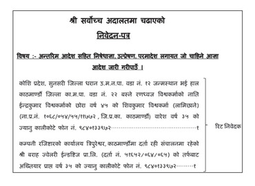 धरान । वराह ज्वेलरी इण्डष्ट्रिज प्रा.लि.ले धरान उपमहानगरपालिकासहित ६ सरकारी तथा निजी संस्थाविरुद्ध क्षतिपूर्तिको माग गर्दै मु ...