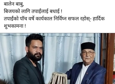 बालेनलाई ओलीको शुभकामना: `पाँच वर्षे कार्यकाल निर्विघ्न रहोस्´
