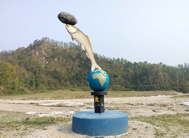 इलामको चुलाचुली गाउँपालिका–५ मा रहेको पर्यटकीयस्थल चपेटीमा निर्माण गरिएको माछाको प्रतिमा। दमकसँग जोडिएको उत्तरी चुरे क्षेत्रम ...