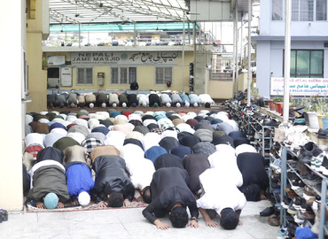 सामूहिक नमाजमा गर्दै मुस्लिम समुदाय