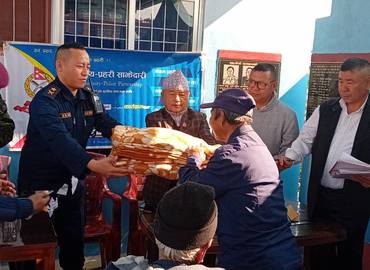 धरान । सामुदायिक प्रहरी साझेदारी कार्यक्रम अन्तर्गत इलाका प्रहरी कार्यालय धरानले धरान–१५ का विपन्न ज्येष्ठ नागरिकलाई न्यानो क ...