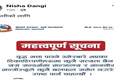 विजयपुर । सामाजिक सञ्जालमा “वृद्ध भत्ता पाउने उमेर बढाइयो” भन्ने हल्ला निराधार रहेको अर्थ मन्त्रालयले जनाएको छ । मन्त् ...